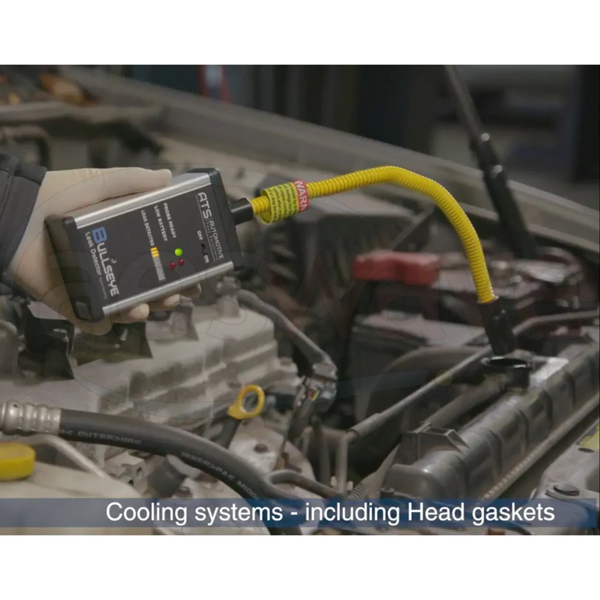 Use the BULLSEYE to find leaks in EVAP systems, A/C systems, engine cooling systems, head gaskets, tires and wheels, air ride suspensions, air brakes, antifreeze, radiator, water pump, block etc….