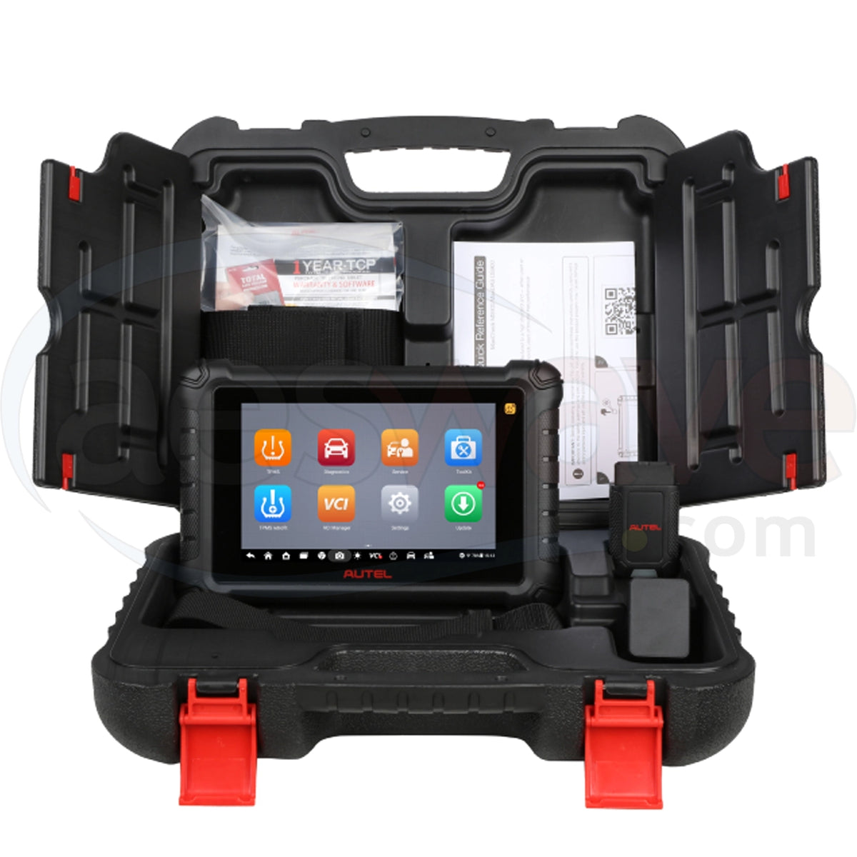 The TS900 offers both basic all-systems diagnostics, such as the ability to read and clear codes and view Freeze Frame and Live Data, and advanced features, such as Active Tests and Special Functions. The TS900 can generate, print, and share Pre- and Post-Scans. The Android 11-based tablet features an extensive Service Menu providing direct access to more than 40 service functions, including Oil and Service Lights reset, Electronic Parking Brake reset, Brake Bleed, Air Bag reset, and Occupancy Seat calibration. The TS900 offers an advanced processor, 4GB operating memory, and 64 GB storage memory. The tablet comes with a one-year limited warranty and free TPMS software updates for the life of the tablet.