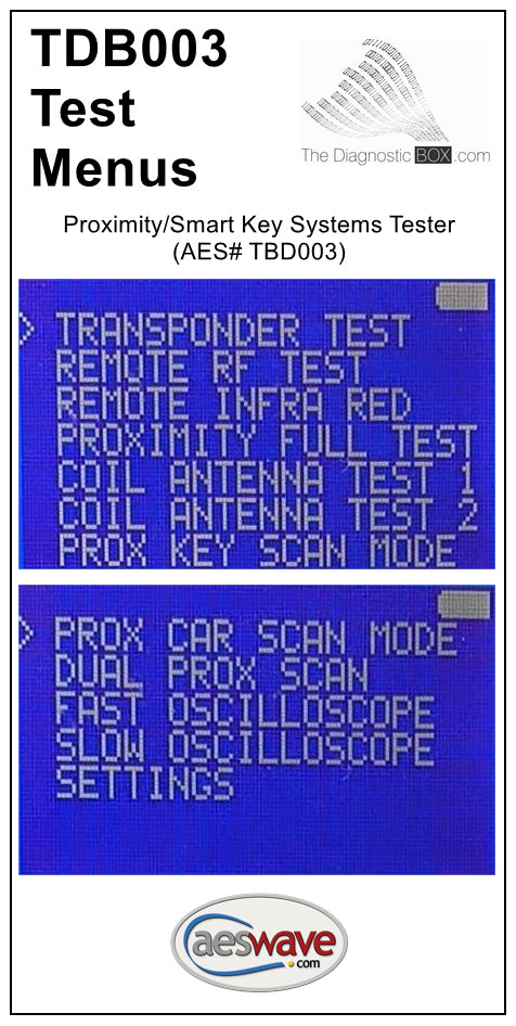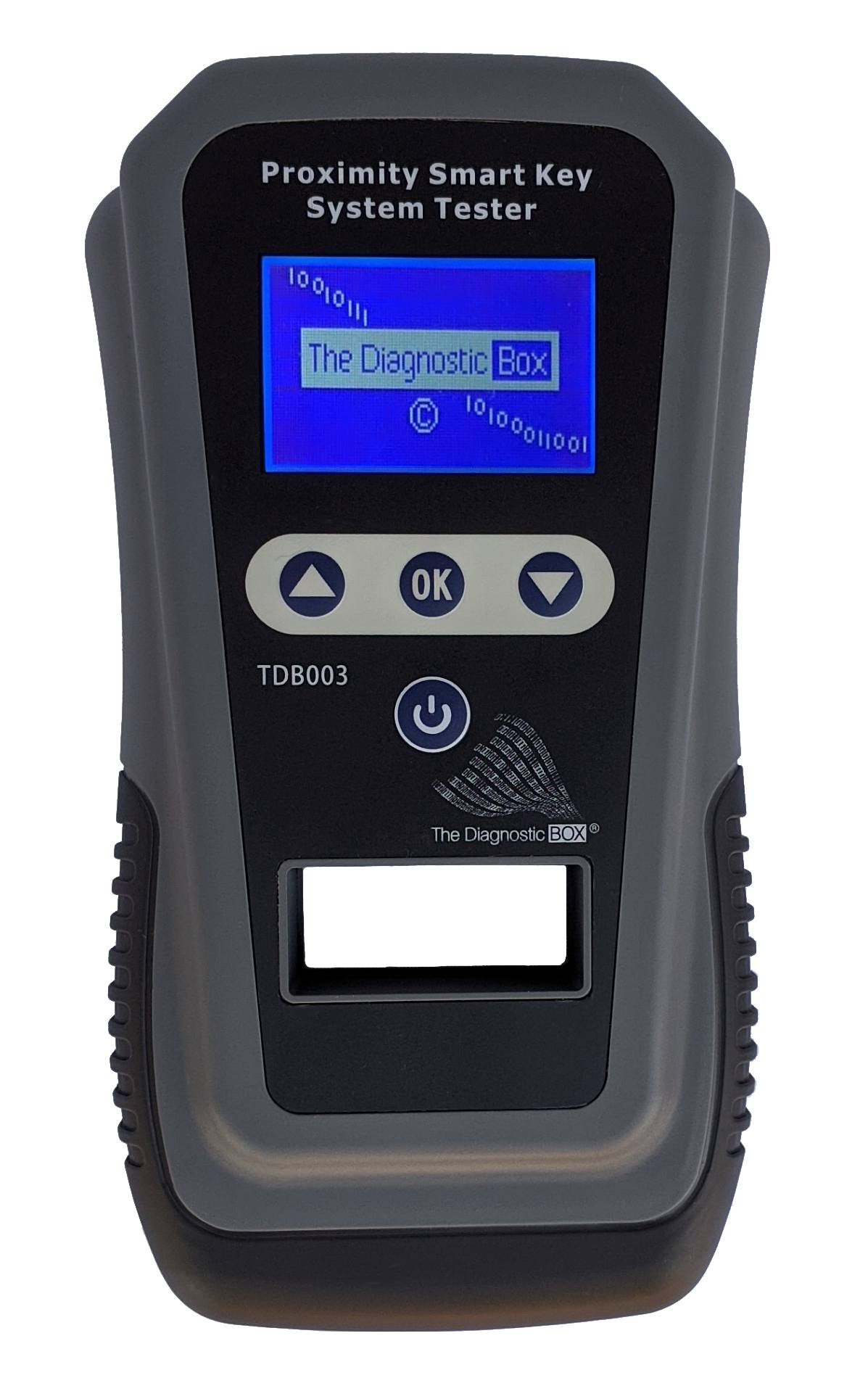 The TDB003 Proximity/Smart Key Systems Tester tests the car and the key. Its a small device that allows technicians to test the invisible radio or infrared signals from key, immobilizer, and remote entry systems.