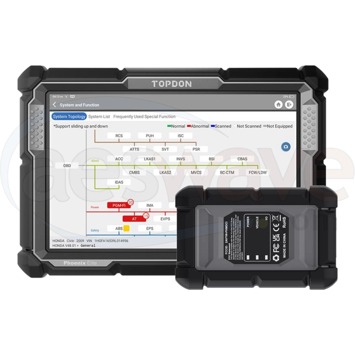 The Topdon Phoenix Elite is a professional-grade diagnostic tool designed for modern vehicles and busy technicians. With a 10.1" capacitive touchscreen, fast 4-core processor, and Android 10 OS, this tool delivers fast, accurate diagnostics. It features CAN-FD protocol support, vehicle topology mapping, guided functions for VAG vehicles, and cloud-based programming.